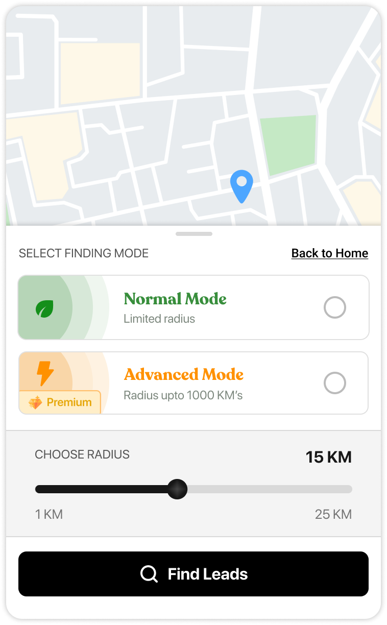 Refine your search by setting a radius. Focus on leads near your preferred location for better results.